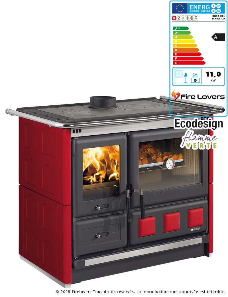 Rosa XXL.16 Maiolica est une cuisinière à bois signée La Nordica, conçue pour chauffer jusqu’à 315 m³ avec une puissance de 10,5 kW. Son...