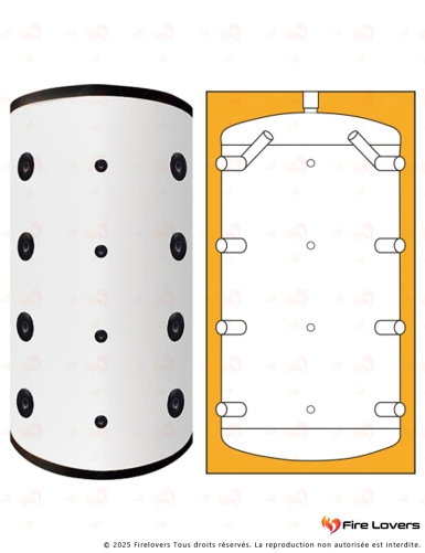 Ballon tampon BUFFER 1500L conçu pour optimiser les performances des poêles, chaudières et cuisinières hydrauliques. Il permet de stocker la chaleur et de la restituer progressivement, assurant une distribution homogène et une meilleure gestion de l’énergie.