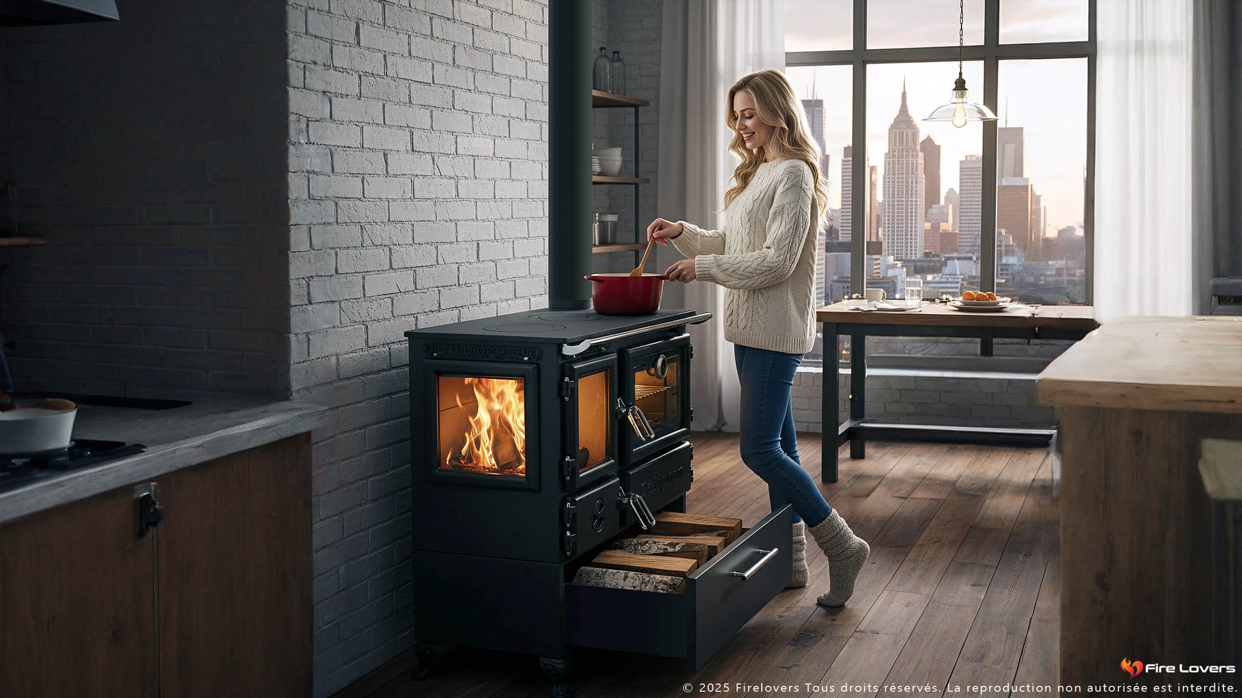 La cuisinière 214 3D Box Gourmet est l’aboutissement de la gamme Caliskan. Elle combine les meilleures caractéristiques de la série 214 : vue panoramique trifaciale, fonction cuisson intégrée et espace de rangement. C’est un modèle polyvalent, moderne, économique et esthétique, idéal pour celles et ceux qui souhaitent profiter pleinement du feu de bois, dans un confort durable, avec style.