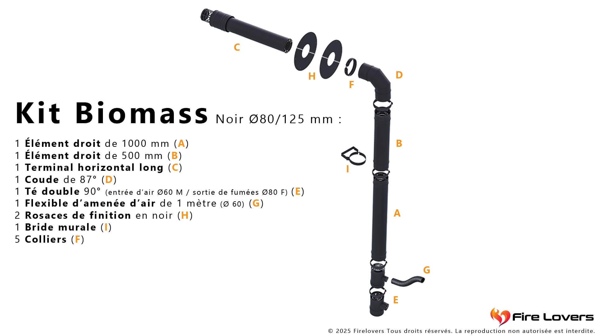 Kit Twin-Biomass Ø80 noir est un kit ventouse horizontal conçu pour les poêles à granulés étanches. Il comprend tous les éléments nécessaires à une installation en zone 3 (terminal horizontal), avec une finition noire esthétique. Adapté aux installations murales, il intègre tuyaux, coudes, terminal, rosaces, té et bride. Il respecte les normes EN 1856-1 (T450) et bénéficie d'une garantie de 25 ans. Ce kit est parfait pour un montage simple, rapide et conforme aux exigences RT2012.