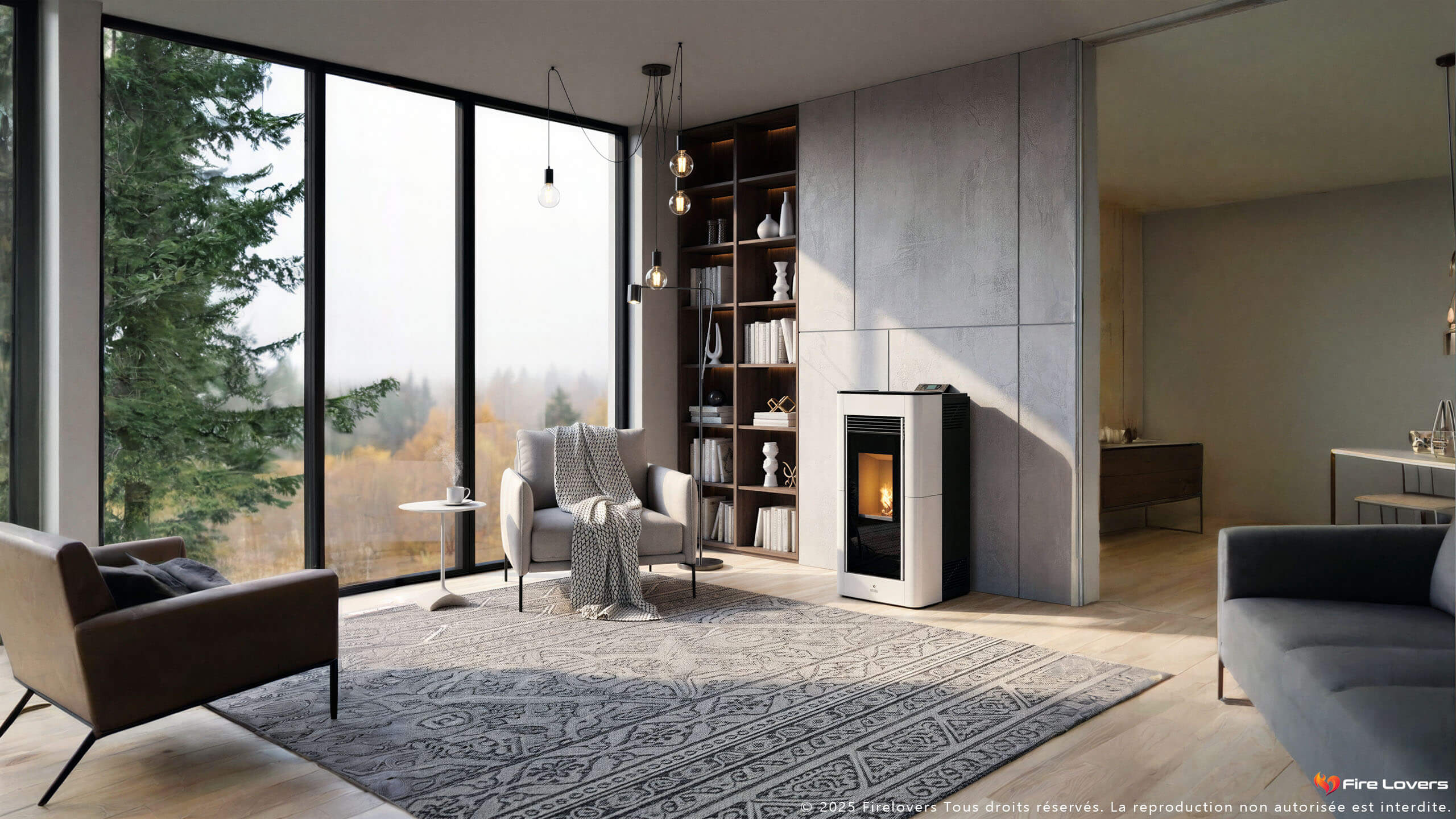 Petra S 7 est un poêle à granulés étanche signé AGE. Son creuset autonettoyant, son tiroir à cendres extractible et sa modulation automatique assurent confort et simplicité d’usage. Son design compact et élégant, décliné en trois finitions, s’adapte à tous les intérieurs. Programmable, silencieux et performant avec son rendement impeccable de 95.3%, il peut être équipé en option d’un module Wi-Fi ou d’une télécommande. Il répond aux normes environnementales Ecodesign 2022 et s’intègre parfaitement dans les logements modernes.